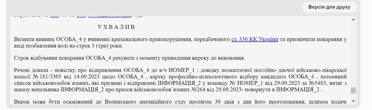 Три роки реального строку у в’язниці за відмову від мобілізації отримав мешканець Волині, — Ківерцівський районний суд.