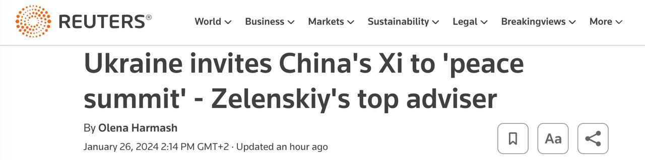 "Ми безперечно запрошуємо Китай взяти участь у саміті, на найвищому рівні, на рівні президента Китайської Народної Республіки. Участь Китаю буде для нас дуже важливою. Ми працюємо з китайською стороною. Ми залучаємо наших партнерів у світі, щоб вони донесли до китайської сторони, наскільки важливо брати участь у такому саміті", - заявив він.
