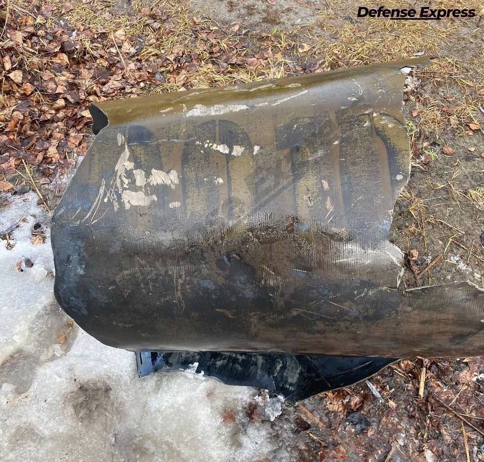 На них видно великий за розмірами уламок фюзеляжу, який має нехарактерне для російських ракет маркування.