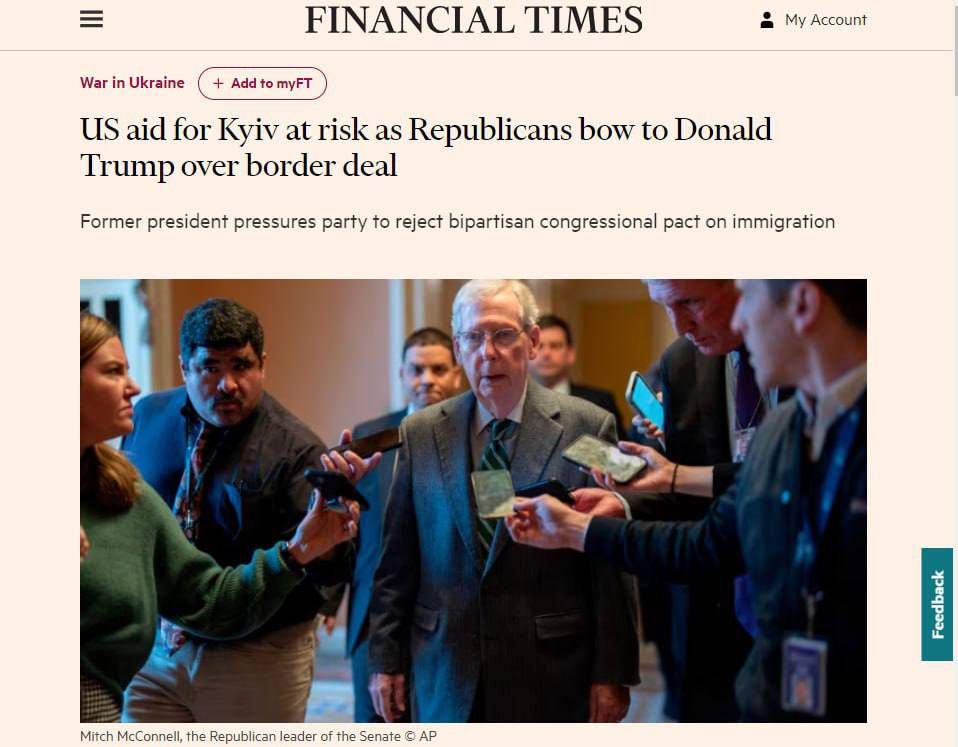 Допомога Україні від США на волосині, оскільки Трамп намагається зірвати угоду в Конгресі, що пов’язує збільшення фінансування Києва з посиленням контролю над імміграцією.