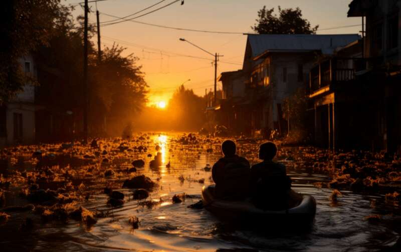 На виставці представлені роботи, в яких зображені візії автора навколо теракту на Каховській ГЕС. Вони були довершені баченням штучного інтелекту.