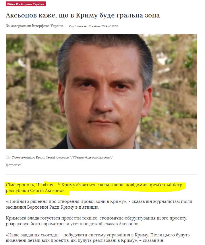 Виявилось, що в далекому 2014, коли росіяни анексували Крим, одним з перших рішень окупантів було створення в Криму окремої зони грального бізнесу. Аксьонов багато про це говорив, пуйло звісно підтримав.