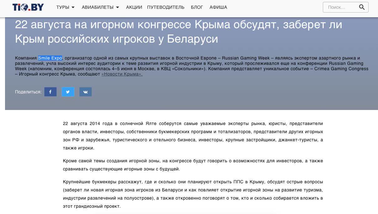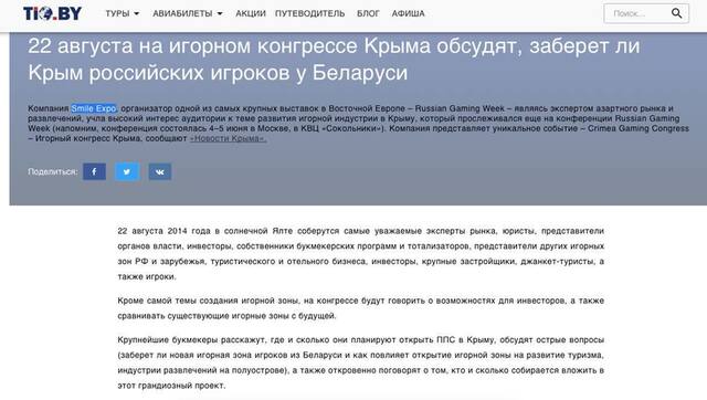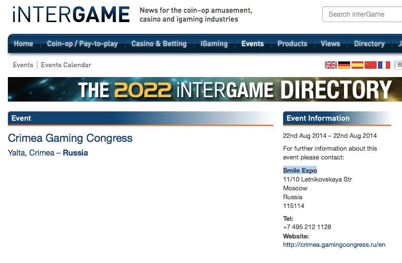 Перед Кримом Smile Expo організував гральний форум в Москві, після Криму в Сочі, тож компанія системна. Зайдіть на їхній сайт з VPN. В них десятки гемблінгових подій в Росії та Білорусі щороку.