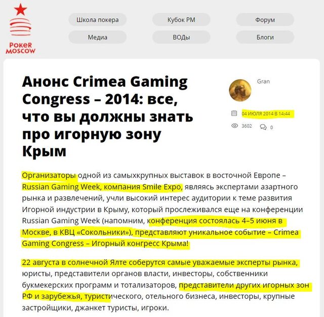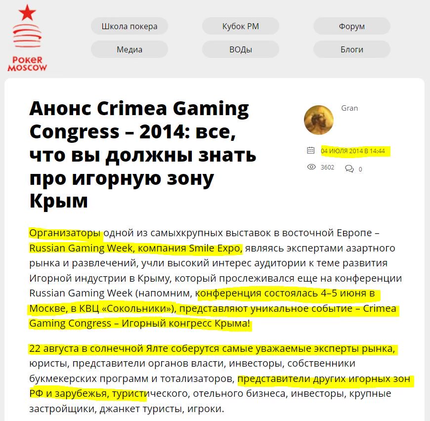 І ось, в серпні 2014 року, в окупованій Ялті було проведено першу Кримську конференцію з гемблінгу.