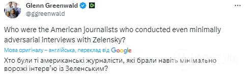 7 лютого мільярдер відзначився іншим скандальним коментарем. Журналіст Ґленн Грінвальд, який неодноразово був помічений за просуванням російських наративів, запитав: "Хто були американські журналісти, які проводили хоча б мінімально вороже інтерв’ю із Зеленським?"