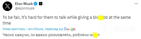 "Чесно кажучи, їм складно говорити й одночасно робити м**ет", – нецензурно відповів Маск у Twitter.