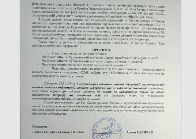 Організація звернулася з проханням надати відомості щодо служби цих осіб у Збройних Силах України, наявності у них доступу до державної таємниці та їхньої ролі у розвідувальних підрозділах.