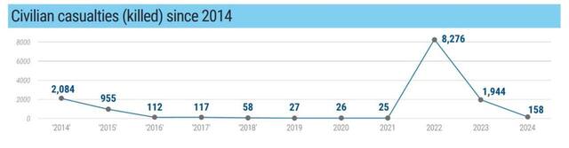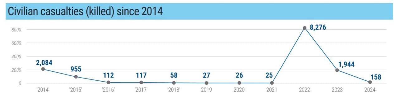 При цьому слід зазначити, що 2023 рік після смертей серед цивільних виявився нижчим, ніж 2014 рік — 1944 особи проти 2084.