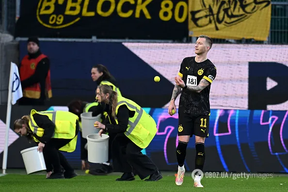 На 56-й хвилині поєдинку "Вольфсбург" - "Борусія" Дортмунд (1:1) уболівальники викинули на газон "Фольксваген Арени" сотні тенісних м’ячів.