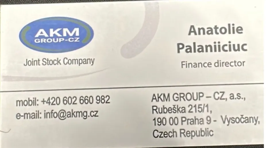Зауважень при прийомці і не могло бути, оскільки військові приймають у надзвичайно активному режимі, та тільки звіряється кількість та маркування та фізично не могли перевірити їх серцевину (чи це бойовий вольфрам, чи цивільний свинець) та якість збірки. Справжня «прийомка» відбувається на фронті, коли ці НЕБОЙОВІ перероблені патрони потрапляють на передову. Звичайно, у бійців-снайперів просто немає часу та бажання писати якісь листи-рекламації тощо. Тому, сподіваємось, що про те, що це НЕ БОЙОВІ патрони, снайпери змогли дізнатись до того як зарядили ними гвинтівки і просто викинули цей непотріб. А тепер перейдемо до головного – хто ж стоїть за AKM-group CZ? На очі потрапила ось така візитна картка: