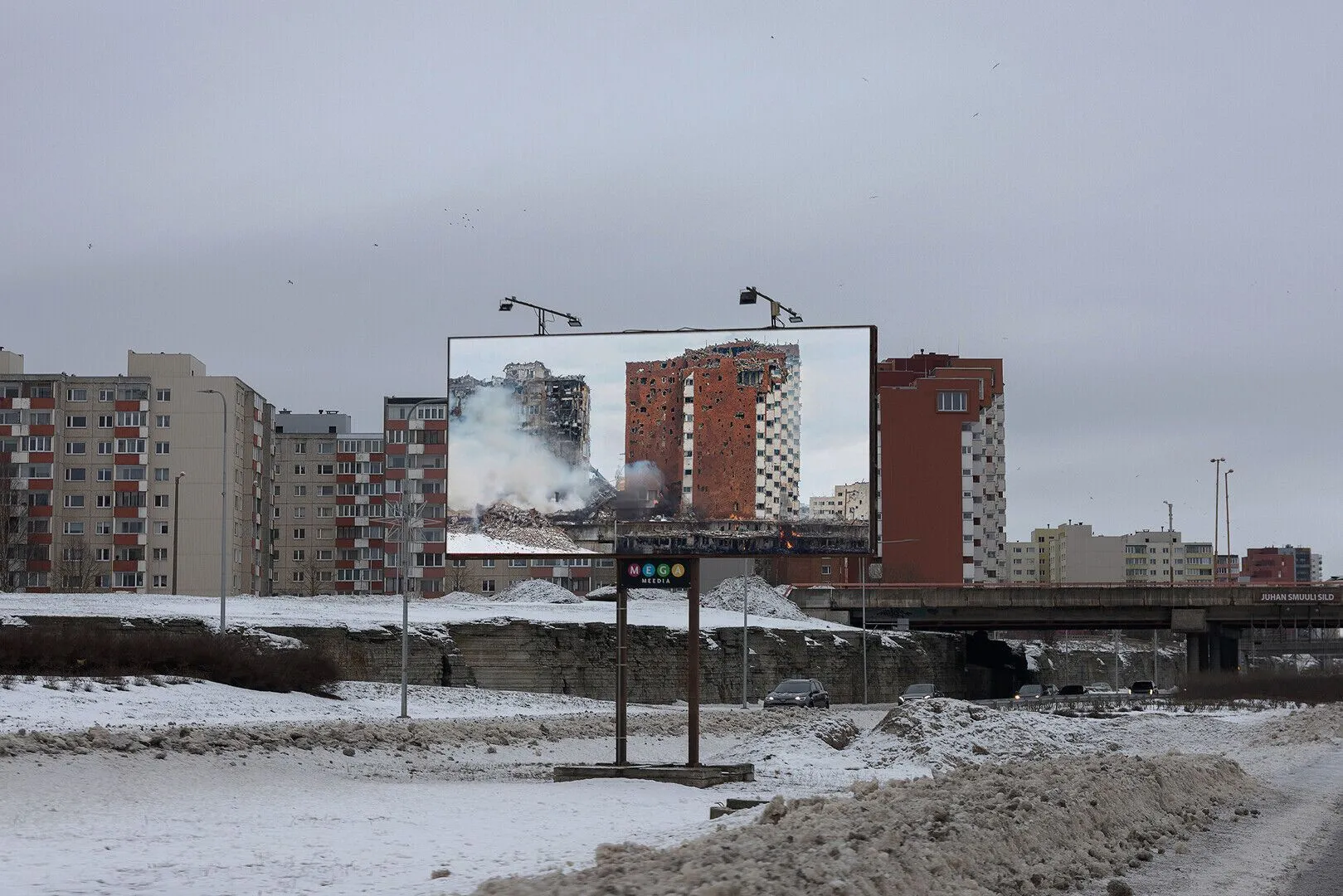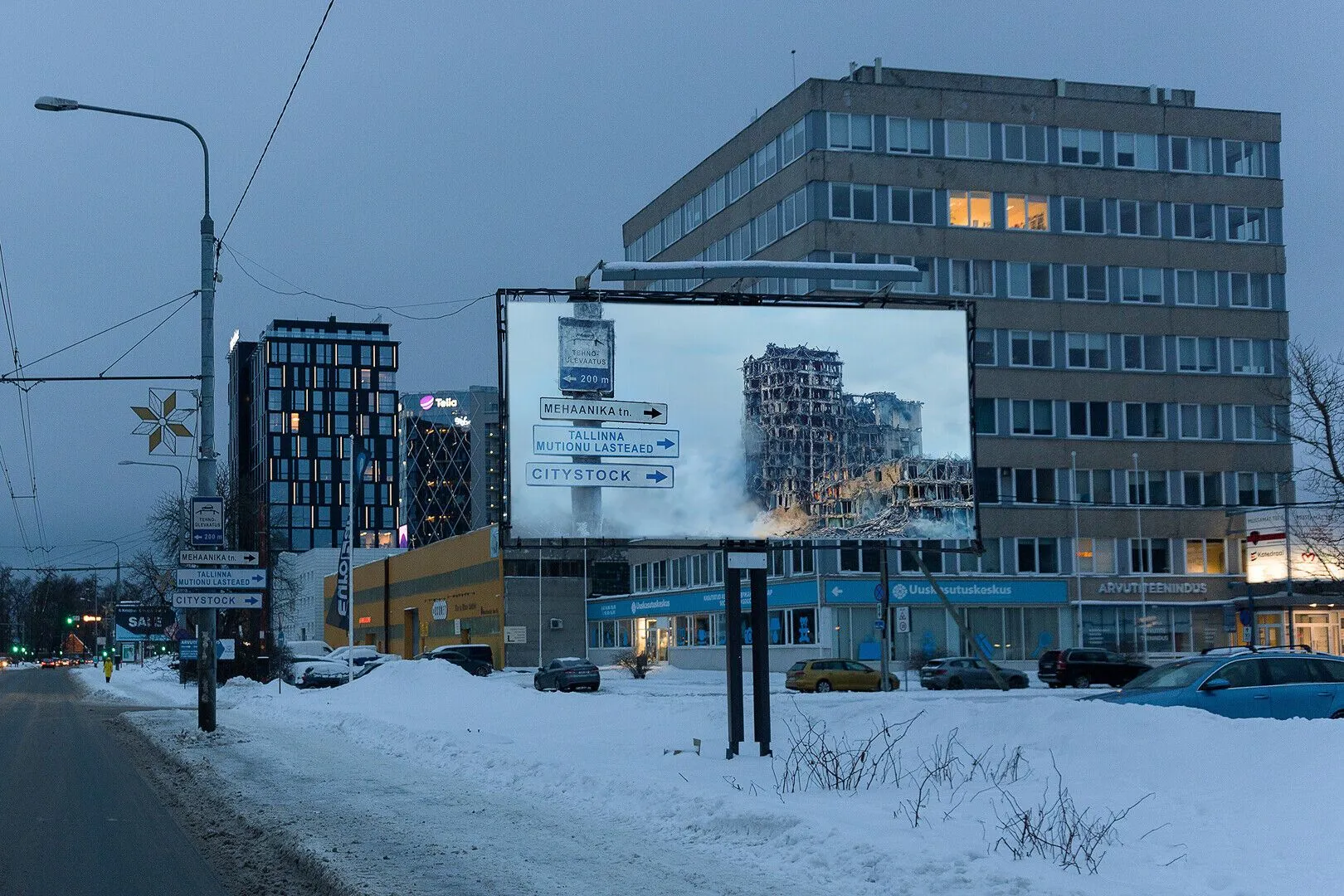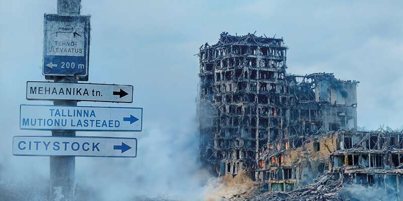 У Таллінні (Естонія) на вулицях розмістили білборди, які показують, як могли б виглядати місцеві будівлі в разі їх руйнувань обстрілами. Більшість плакатів розміщені у районах де проживає російськомовне населення.
