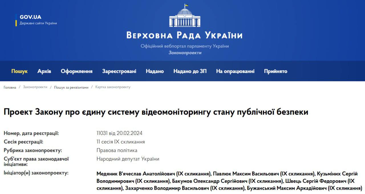 У Раді зареєстрували законопроєкт, яким пропонується запровадити режим відеоспостереження за громадянами