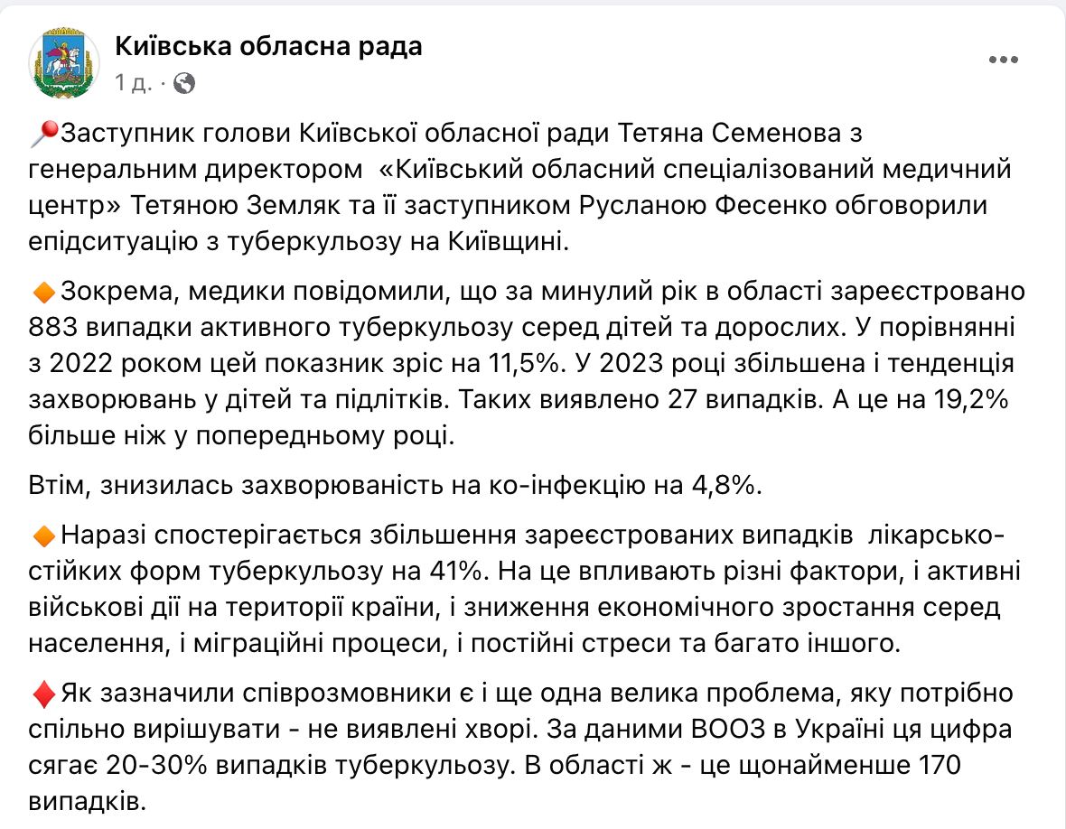 На Київщині у 2023 році захворюваність на туберкульоз зросла на 11,5%