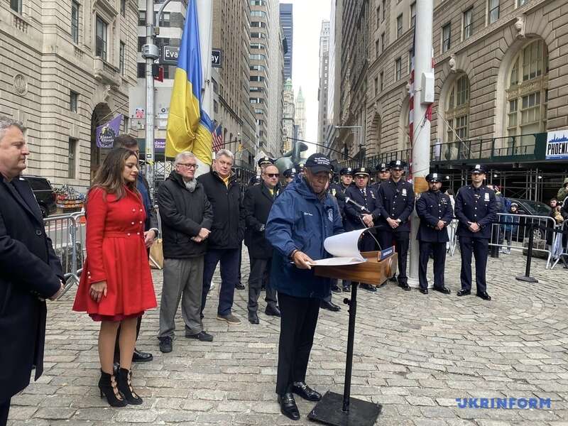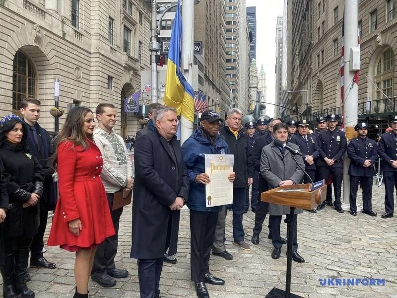 «Український народ демонструє стійкість і дух, який ніколи не здається… Підняття прапора сьогодні - це піднесення нашого духу, нашої єдності, нашої солідарності з українським народом. І ми сподіваємося, що на болях битви в Україні чують наші голоси», - сказав мер Нью-Йорка.