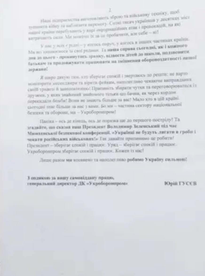 Лист від Гусєва: як в "Укроборонпромі" зберігали спокій перед вторгненням