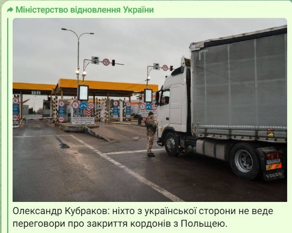 Віце-прем’єр із відновлення Олександр Кубраков заявляє, що ніхто з української сторони не веде переговори про закриття кордонів із Польщею.