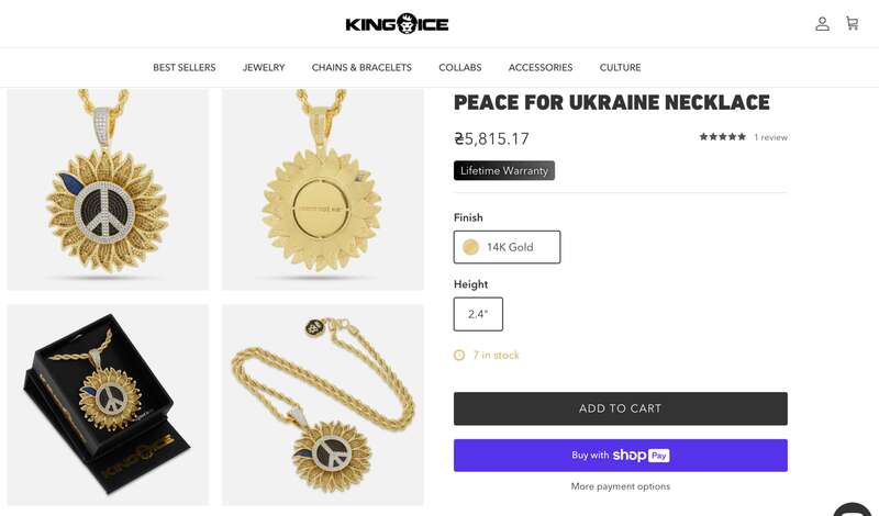 Всесвітньо відомого американського репера Snoop Dogg помітили з прикрасою під назвою Peace for Ukraine Necklace, що перекладається як "Намисто Мир для України". Патріотичну підвіску розробив український 3D-дизайнер Андрій Хромченко спільно з каліфорнійським брендом King Ice.