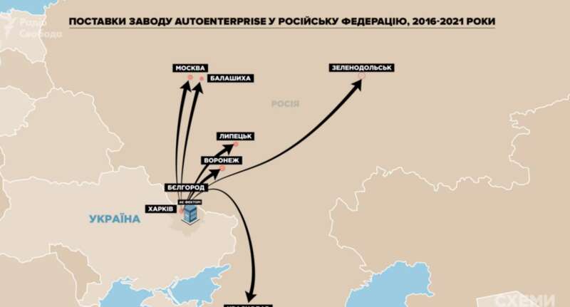 Компанія "АЄ Фекторі" з групи Autoenterprise займалася постачанням обладнання із Харкова до Росії. Продажі зафіксували до Липецька, Воронежа, Балашихи, Бєлгорода, Краснодара, Москви, Зеленодольська.
