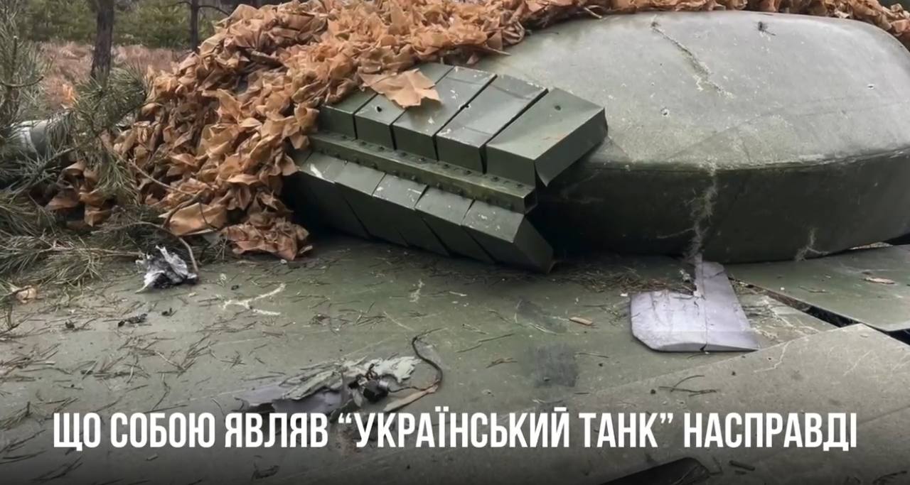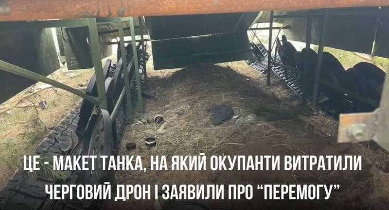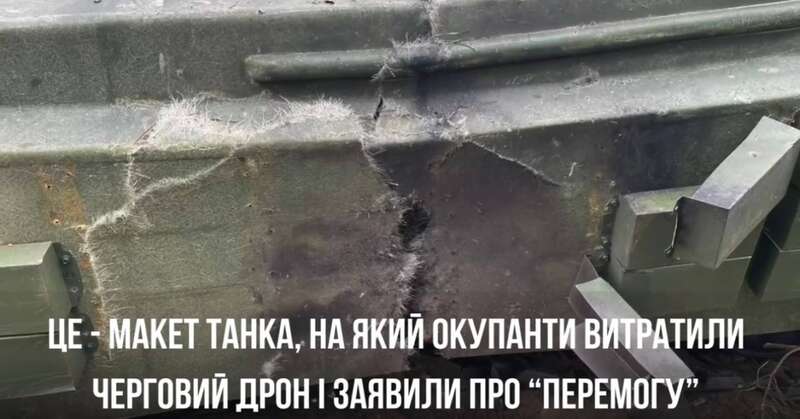"Це макет танка, на який окупанти витратили черговий дрон і заявили про перемогу", — йдеться у підписі під світлинами.