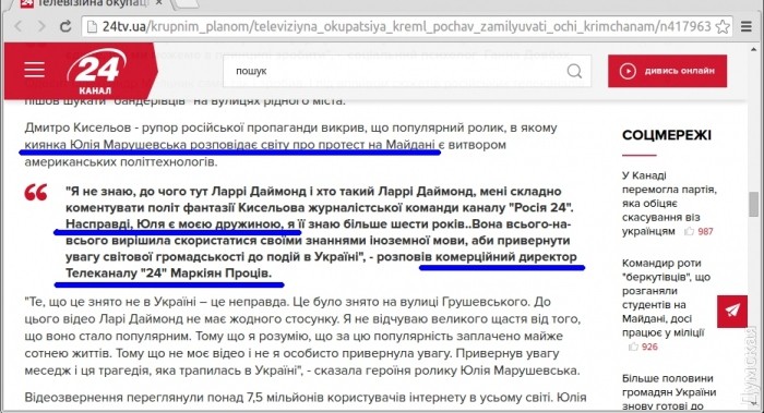Это обстоятельство поясняет историю создания знаменитого видеоролика «I Am a Ukrainian», в котором рассказывалось о Евромайдане и о мотивах людей, которые вышли на протесты, а также выбор Марушевской в качестве ведущего персонажа этого ролика.