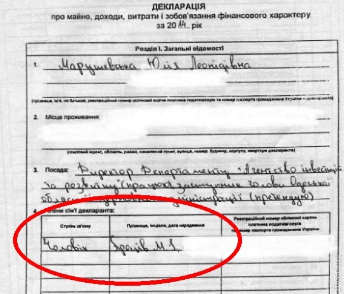 О том, что Юлия Марушевская замужем, мы узнали из декларации о доходах, опубликованной на сайте ОГА. В разделе «члены семьи» указан муж — Процив М.И. Судя по декларации, он является довольно успешным предпринимателем, который за прошлый год, помимо зарплаты, получил доход от предпринимательской деятельности в размере более 500 тысяч гривен.