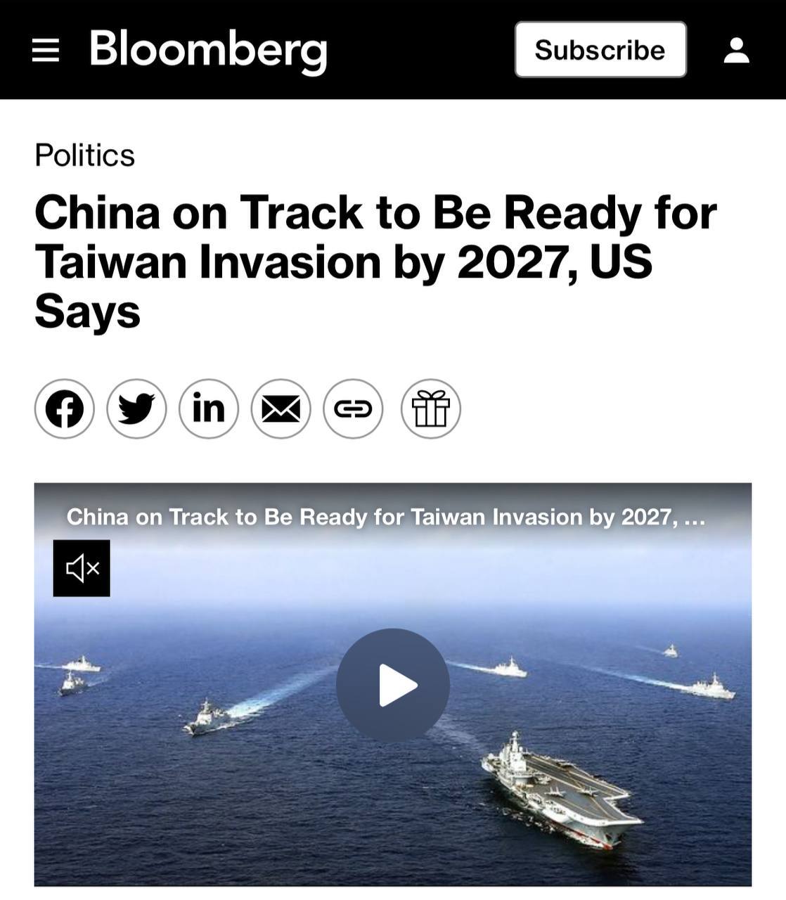 Китай готується до вторгнення на Тайвань до 2027 року, — Bloomberg