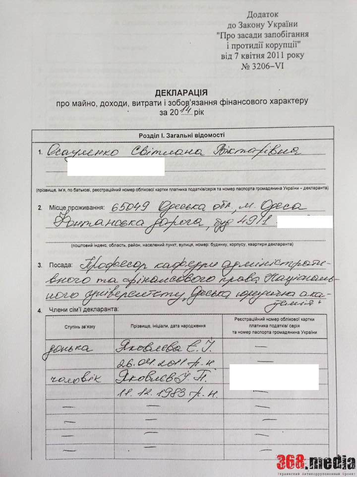 В ее собственности есть два квартиры – одна находится в Одессе (139 кв. метров) на улице Говорова, а другая – В Кировограде. При этом прописана Осауленко в квартире в доме №49/1 на Фонтанской дороге.