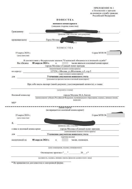 Деяким жителям Москви почали надходити електронні повістки. Це відбулося 24 березня – після того, як 22-го числа у столиці РФ у концертному залі "Крокус Сіті Холл" озброєна група вбила щонайменше 133 особи.
