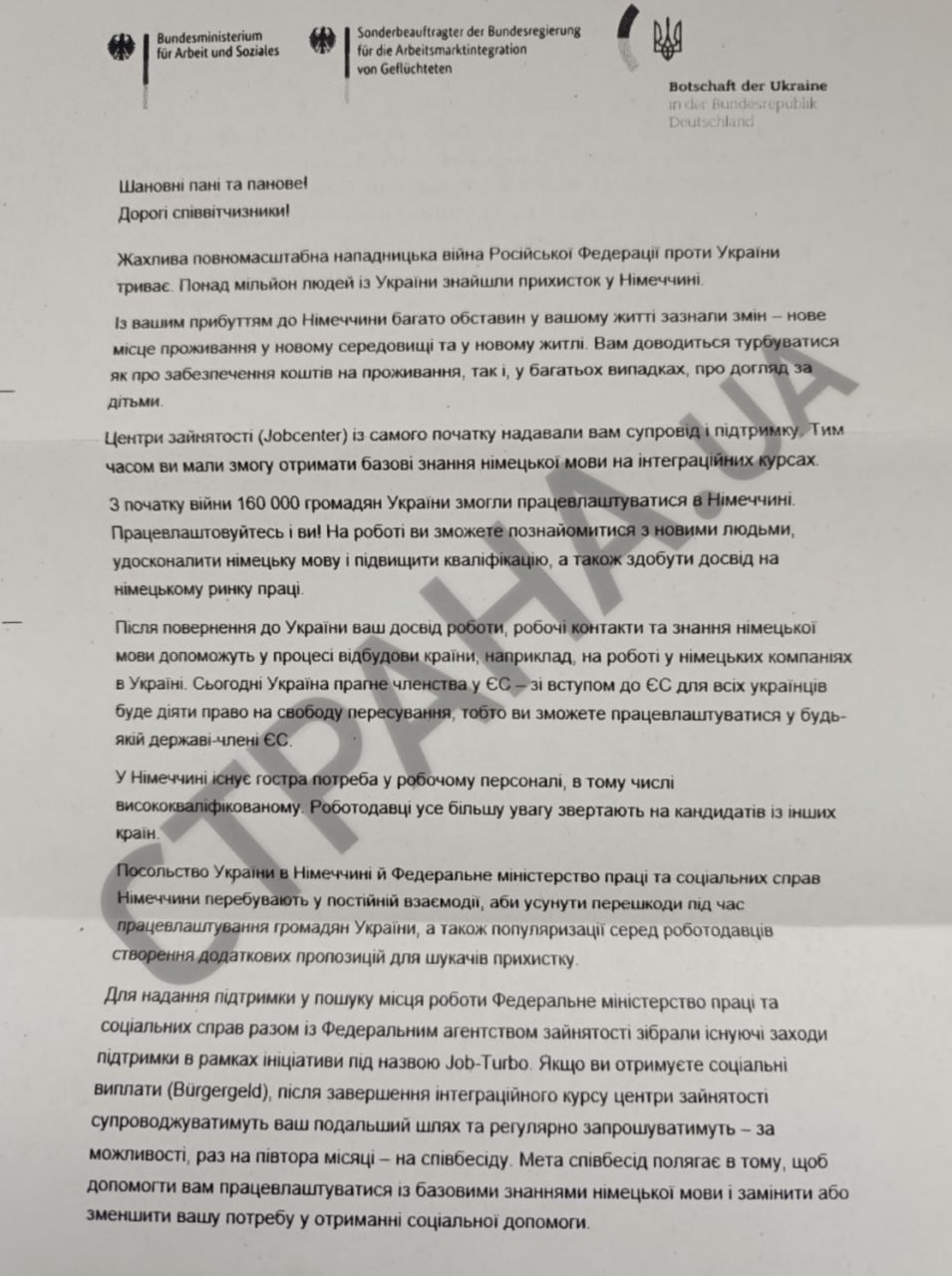 Зазначимо, що подібні конверти прийшли зокрема українцям, які вже працюють у Німеччині.