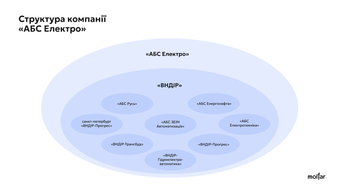 У його профілі на linkedin повідомляється, що він не володіє компанією ABS Electro. Але, ймовірно, все ще її контролює. Компанія, зі свого боку, володіє "ВНИИР".