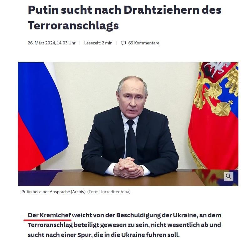 Багато ЗМІ, відмовившись від терміна "президент", використовують щодо Путіна більш нейтральне визначення "глава Кремля" і його синоніми ("шеф Кремля", "начальник Кремля" тощо). Так, зокрема, чинить німецька газета Sueddeutsche Zeitung і багато інших німецьких видань.