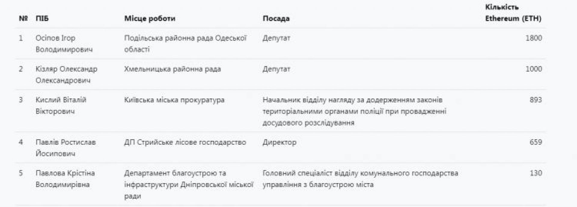 Депутат задекларував ще 1 000 ефіріумів (ETH), що робить його другим за багатством криптополітиком в Україні. Ціна одного ефіріума на сьогодні – 2500 доларів США.