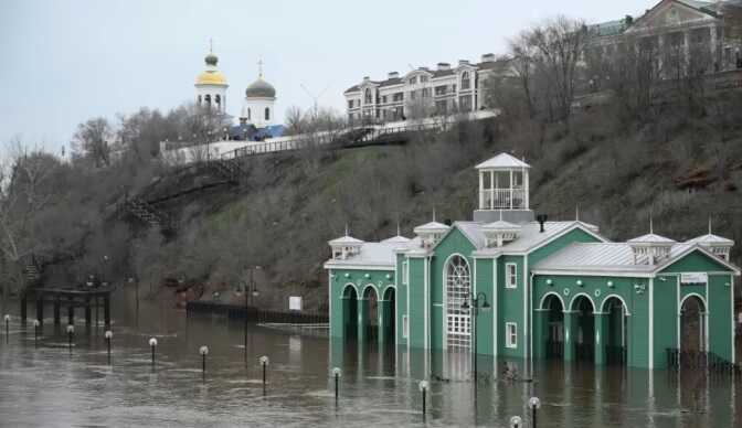 Рівень води у річці Урал у міста досяг 10 м, перевищуючи безпечний рівень на 70 см.