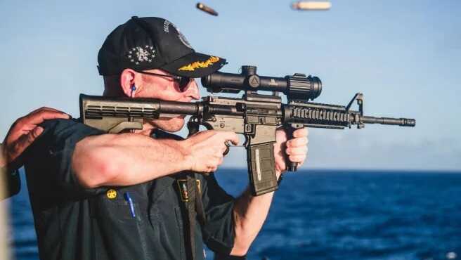 ВМС США опублікували фотографію, де командир американського корабля стріляє з гвинтівки. Користувачі мережі помітили, що оптика на зброї неправильна.