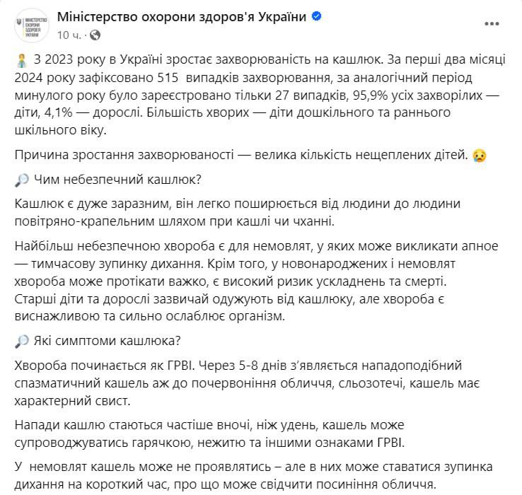 Теги: ДітиДетикоклюшМинздравМОЗ