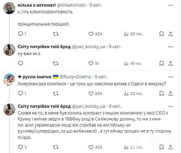 Чим далі закінчилося спілкування, невідомо, але допис викликав бурхливу реакцію в Мережі. Українці не розуміють, для чого було цікавитися мовними побажаннями кандидата, щоб потім просто поставити перед фактом. Ба більше, зазначають користувачі Х, якщо компанія з Одеси позиціонує себе як американська, чому ж мовою спілкування між працівниками обрали російську, а не англійську.