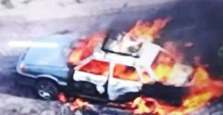 Унаслідок обстрілу автівка спалахнула.