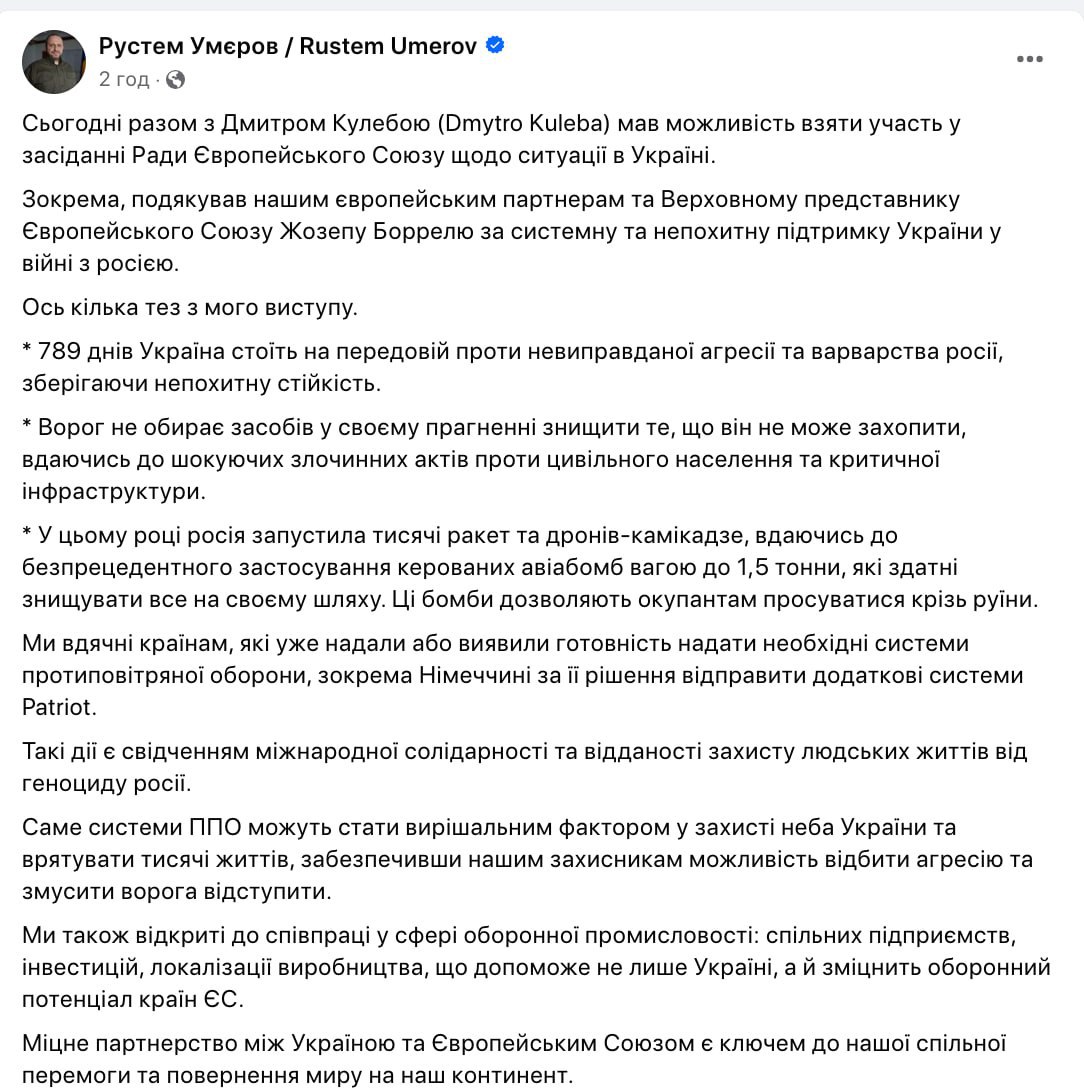 "Цього року Росія запустила тисячі ракет і дронів-камікадзе, вдаючись до безпрецедентного застосування керованих авіабомб вагою до 1,5 тонн, які здатні знищувати все на своєму шляху", - заявив міністр оборони.