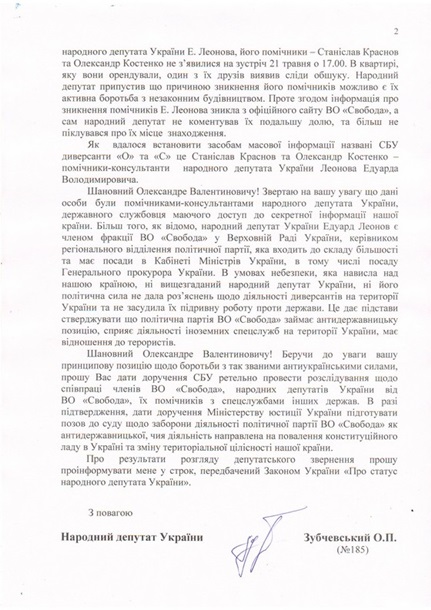 Сегодня, 4 июня, депутат от КПУ Александр Зубчевский выступая в парламенте потребовал от и.о. Президента Украины, спикера парламента Александра Турчинова инициировать вопрос о запрете политической партии ВО «Свобода» как антигосударственной, сотрудничающей с иностранными спецслужбами.