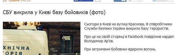 В этот же день в украинских СМИ появилась новость о том, что СБУ раскрыла базу боевиков в Киеве.