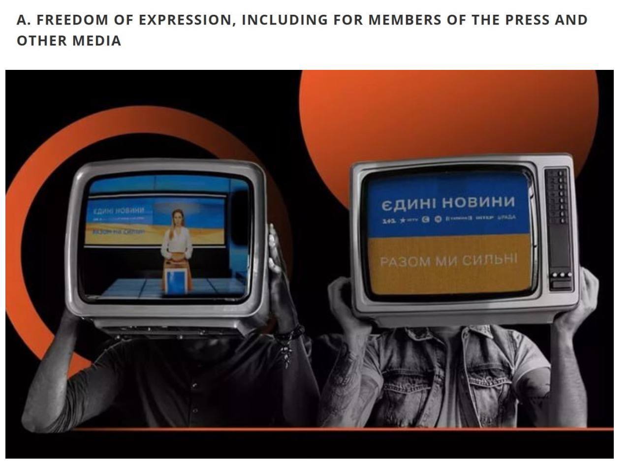 Конституція і закон передбачають свободу вираження думок, але влада не завжди дотримувалася цих прав. Наприклад, телемарафон дотримується урядової лінії у висвітленні війни, — ідеться в документі.