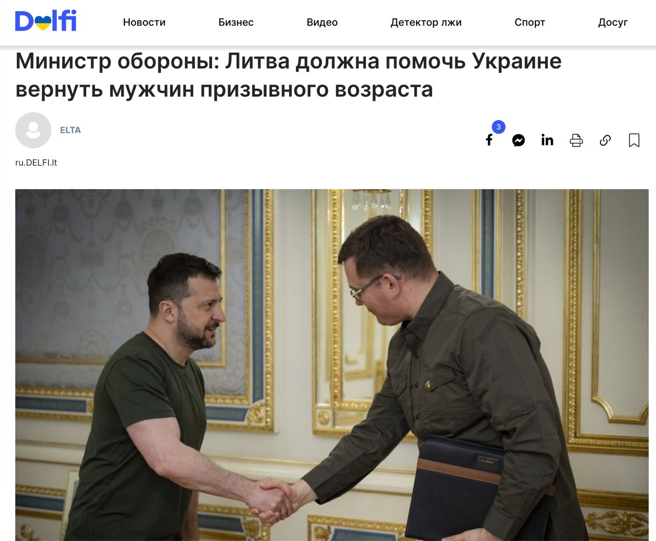 Міністр оборони Литви Лаурінас Кащюнас заявив, що Литва може ввести обмеження щодо українських чоловіків для їхнього повернення на батьківщину.