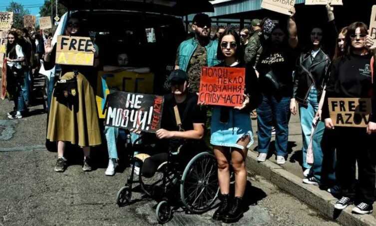 На вулиці Межигірській, що на столичному Подолі, в неділю, 28 квітня, родичі та друзі полонених провели акцію на підтримку захисників «Азовсталі», інших військових та цивільних, які перебувають у російському полоні. Люди вийшли нагадати, що їхні близькі з гарнізону «Маріуполь» досі перебувають у полоні та закликали зробити усе, щоб повернути їх додому.