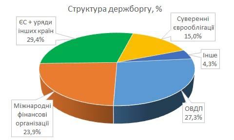 Загалом з початку війни держборг у гривні збільшився майже у 2,2 рази (+3,19 трлн грн), у валютному еквіваленті – на 62% (+57,7 млрд дол.).