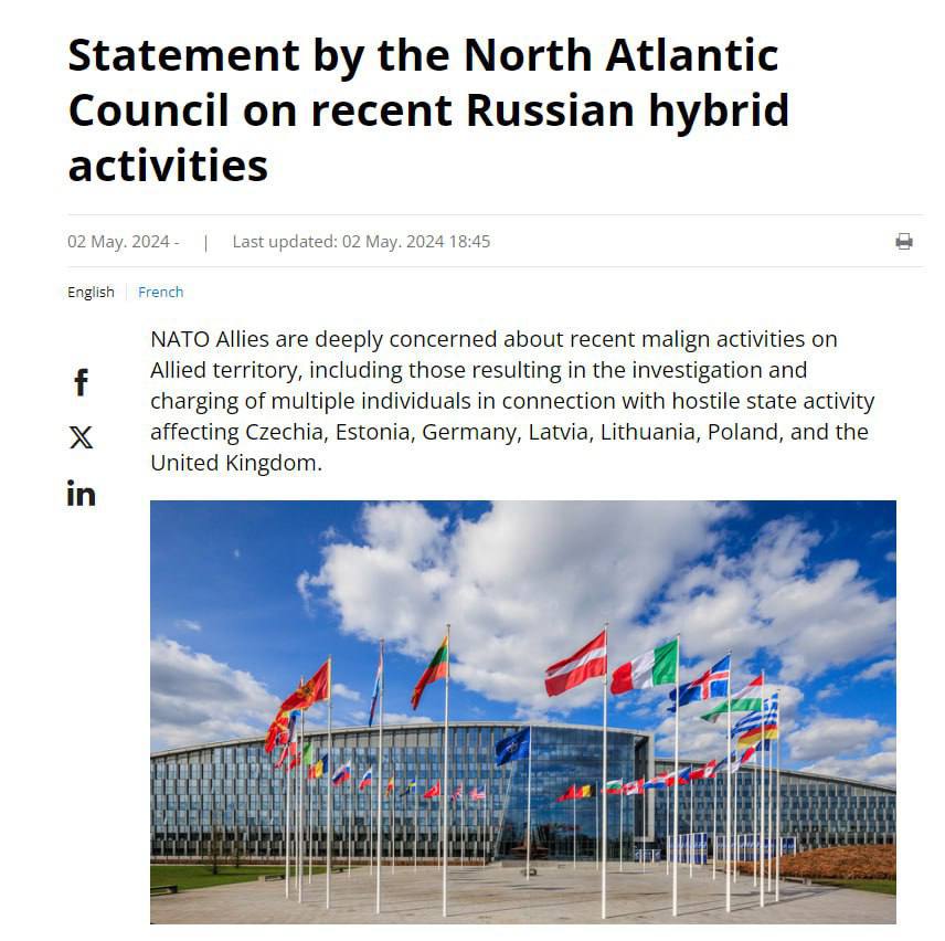 "Ці інциденти є частиною кампанії з активізації діяльності, яку Росія продовжує здійснювати в євроатлантичному регіоні, зокрема на території Альянсу і через підконтрольних їй осіб. Це включає дезінформацію, саботаж, акти насильства, кібер- і електронне втручання, кампанії з дезінформації та інші гібридні операції", – йдеться в заяві.