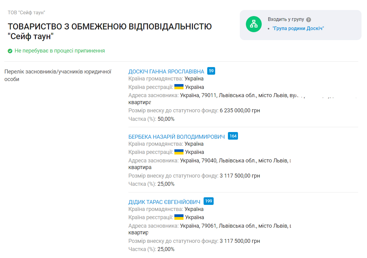 Одне з нових будівництв пов’язує Бербеку з Доскічами. Так, дружина Остапа Доскіча Ганна та Назарій Бербека є засновниками ТОВ «Сейф таун», яка має адресу реєстрації вулиця Кульпарківська, 96А.
