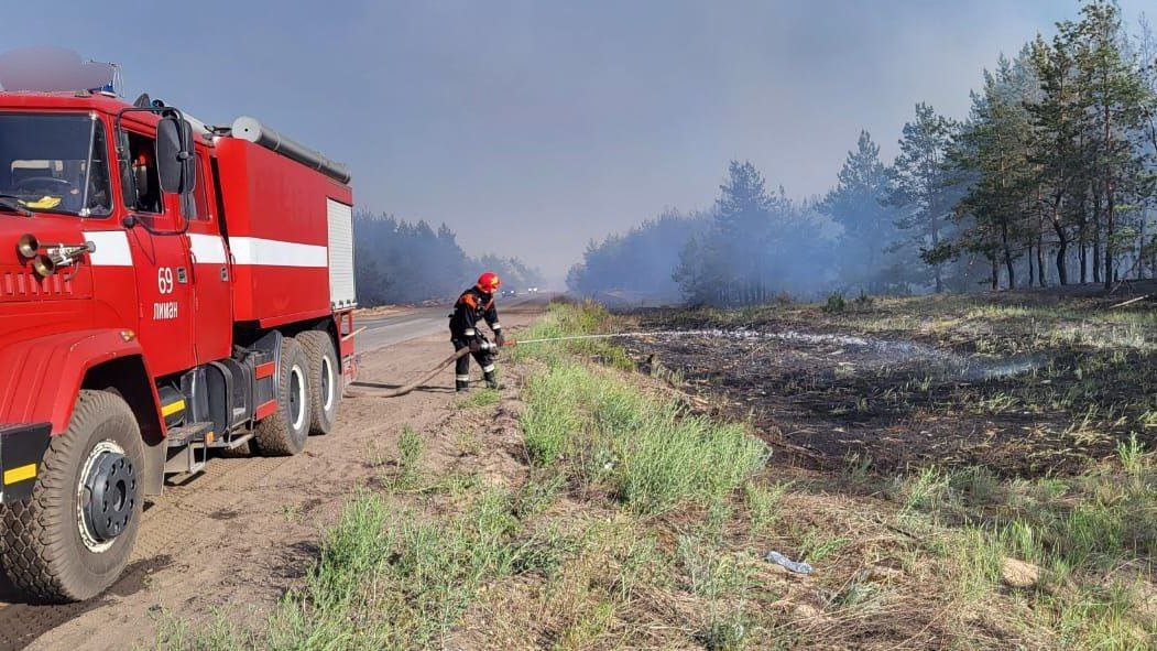 За даними ДСНС, напередодні росіяни завдали удару в околицях міста Лиман, унаслідок чого виникло 5 вогнищ пожежі хвойного лісу.