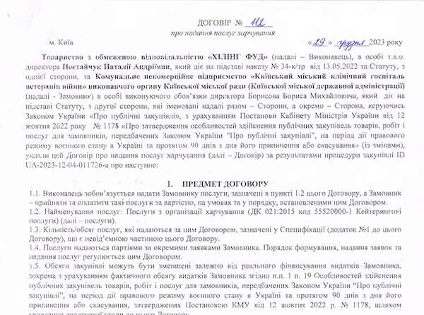 Приклад третій. Договір між “ТОВ “ХІЛІНГ ФУД” з пулу “Foodicine” і КНП “Київський міський клінічний госпіталь ветеранів війни”:
