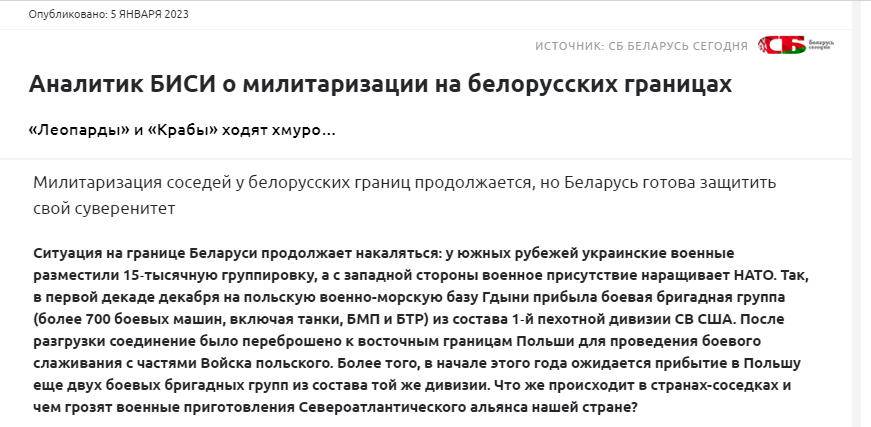 “Ситуація на кордоні Білорусі продовжує розпалюватися: біля південних кордонів українські військові розмістили 15-тисячне угруповання, а із західного боку військову присутність нарощує НАТО”, – пише білоруське державне ЗМІ “СБ. Білорусь сьогодні”.
