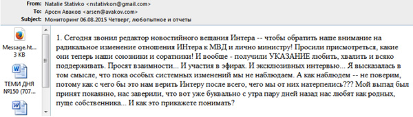 А вот об информационной политике "Интера" подобная переписка говорит довльно красноречиво
